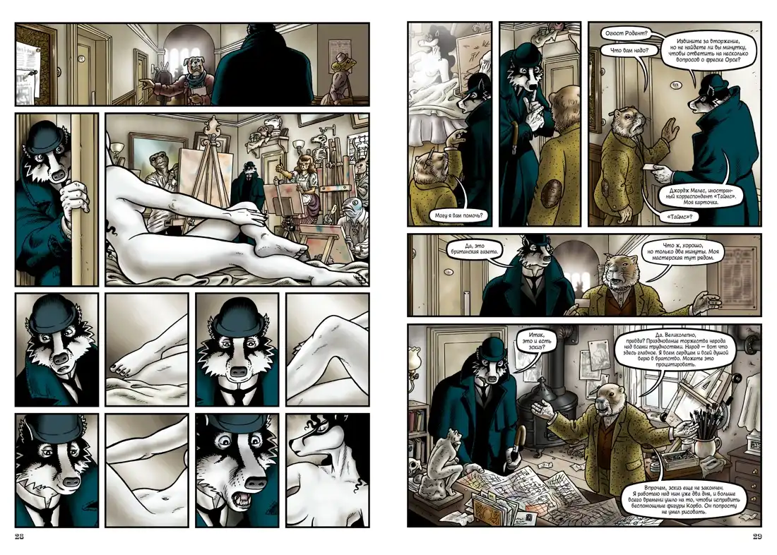 Именно этим маршрутом отправляется детектив-инспектор ЛеБрок из Скотленд-Ярда, расследуя «невозможное» убийство в запертой комнате знаменитого художника Гюстава Корбо, или пытаясь вернуть в семью племянницу своей квартирной хозяйки, угодившую в сети тоталитарной секты «Серебряный путь», или разыскивая так называемые Истинные Евангелия — с поистине барсучьим упорством. Ведь ЛеБрок не кто иной как барсук, и мир «Гранвиля» населён преимущественно антропоморфными животными, тогда как люди («тестолицые») служат на самых чёрных работах и лишены гражданских прав…