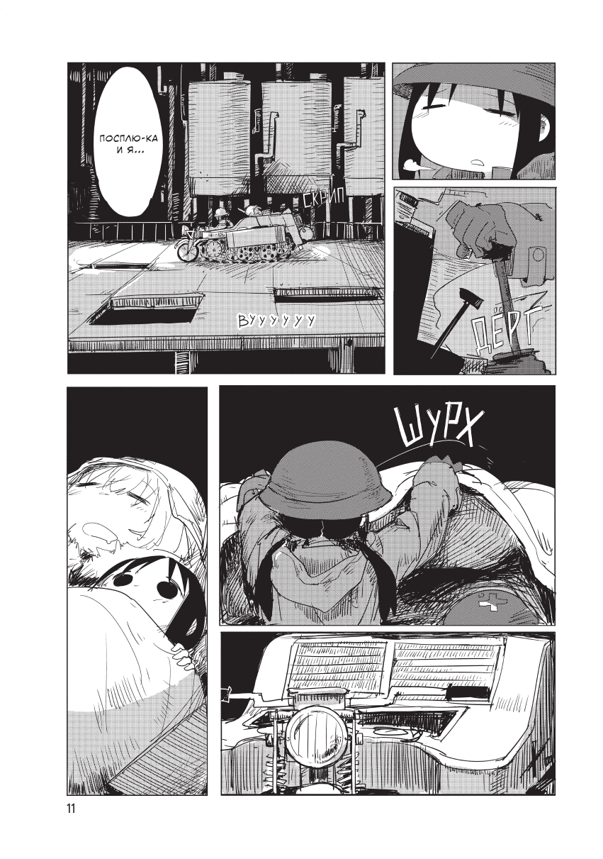 Они путешествуют на своём любимом мотоцикле «Кеттенкраде» по руинам безжизненных городов в поисках еды и топлива. Серые и безнадёжные дни сменяют друг друга, но, пока девочки вместе, даже в самых мрачных моментах они находят что‑то светлое. А их чувства и переживания наполняют этот пустой мир моментами, ради которых всё‑таки ещё стоит жить...