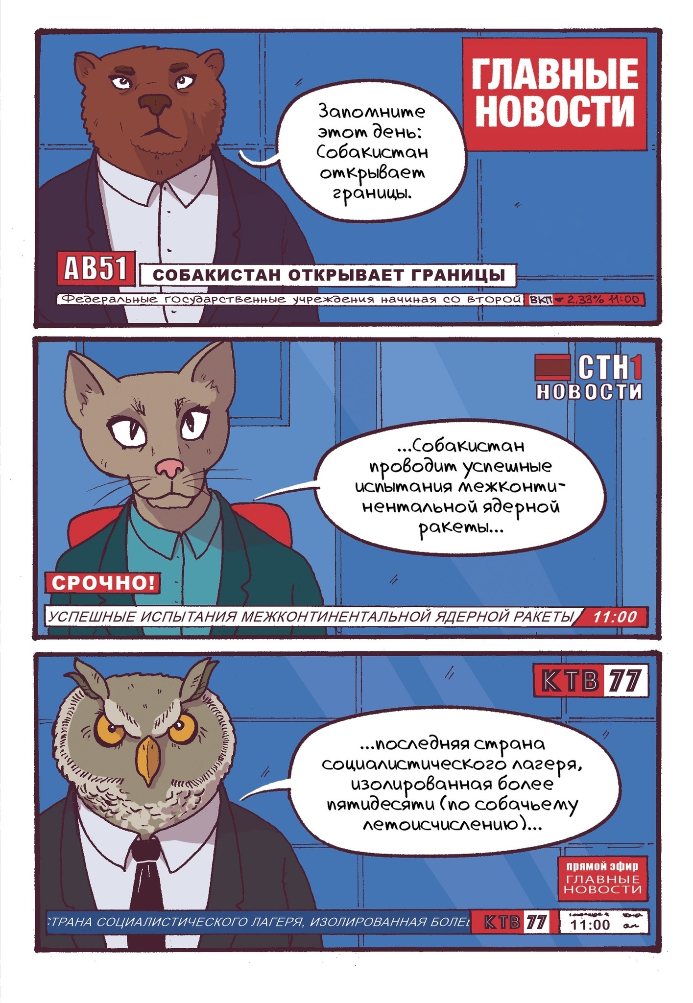 Закрытая социалистическая республика Собакистан открывает границы главам дружественных государств и избранным журналистам в честь репетиции похорон лидера республики — товарища Дружка. Что может пойти не так? Что угодно! Немного стилистики закрытых стран соцлагеря в восьмидесятые годы, немного антропоморфных животных, щепотка шпионских страстей, триллер по вкусу.