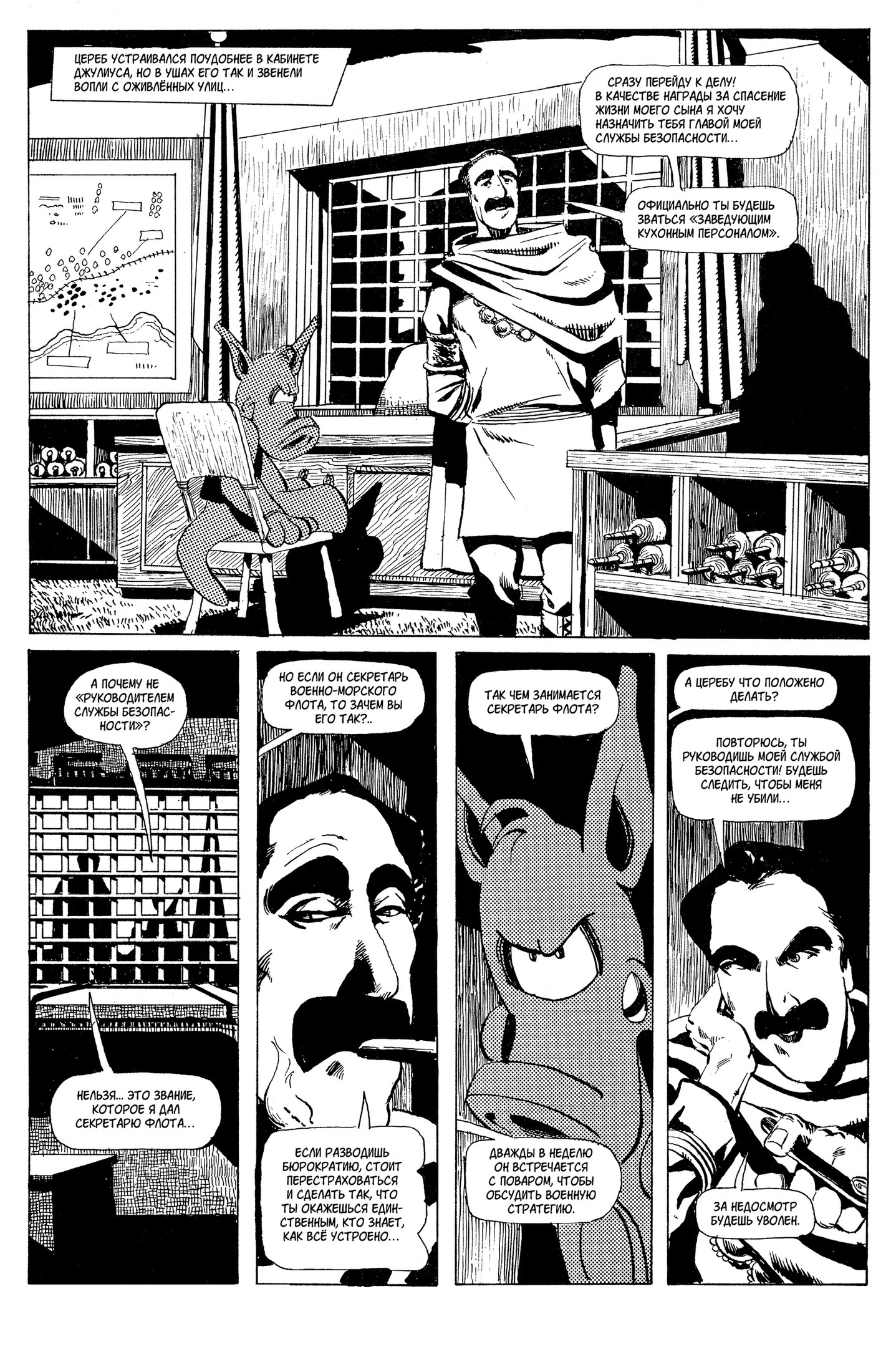 Здесь появляется лорд Джулиус, правитель-клоун и мастер интриг. Здесь начинается путь, ведущий не к славе, а к безумию, одиночеству и сомнительной святости. Сатирический фэнтези-мир Дэйва Сима начинает раскрываться в полную силу — это ещё не философская глубина поздних томов, но уже острая, интеллектуальная сатира с узнаваемым стилем и настоящей драмой.